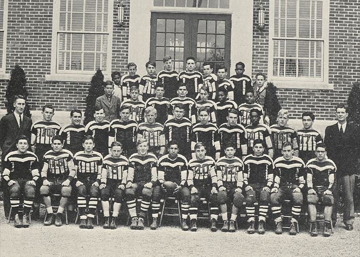 1940 Barnstable High Team that won the Cape Cod Championship. Elliot Macswan, head coach (left of the team, second row). Barnstable beat Nantucket 12-0 on 11-25-1940.